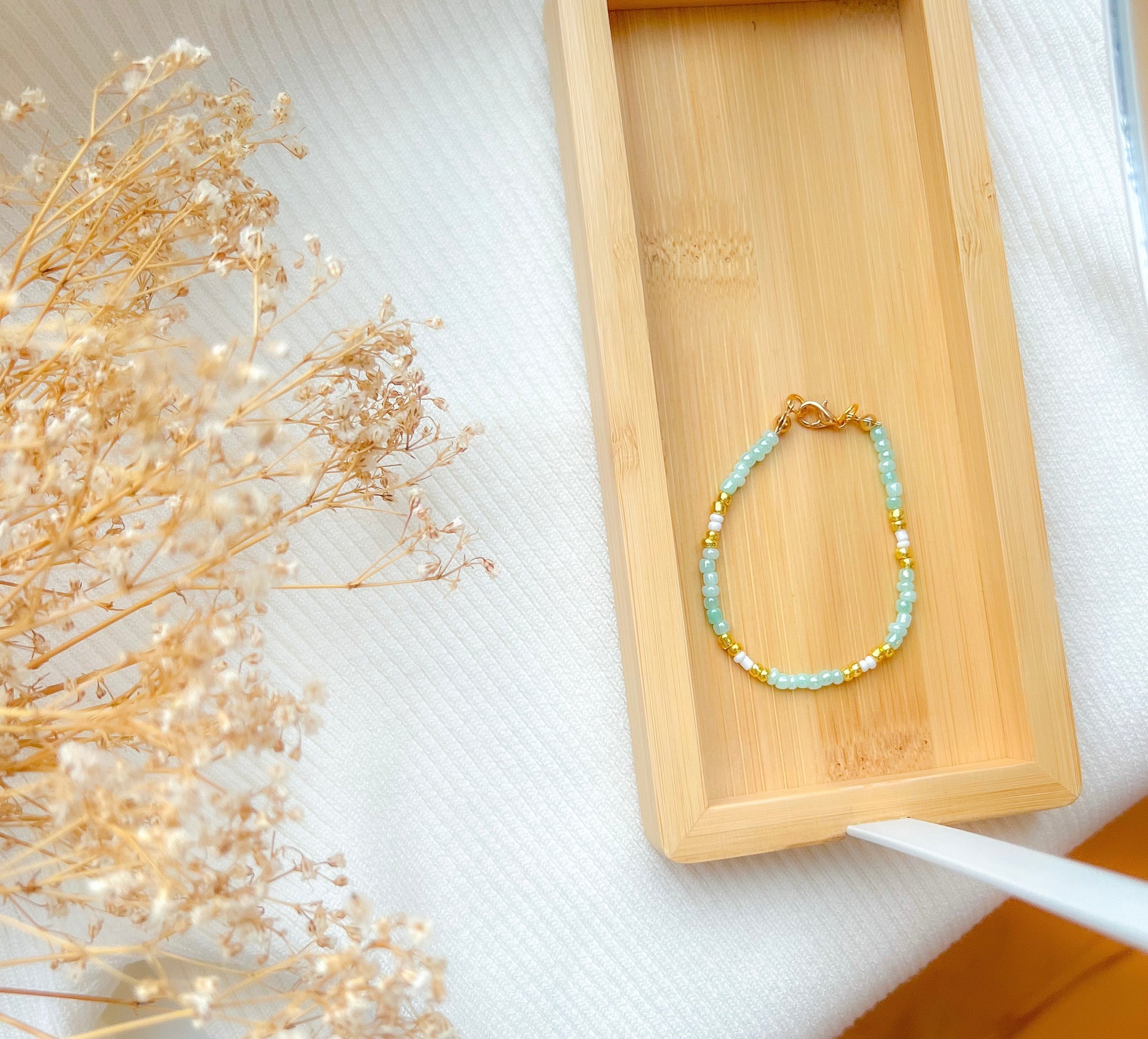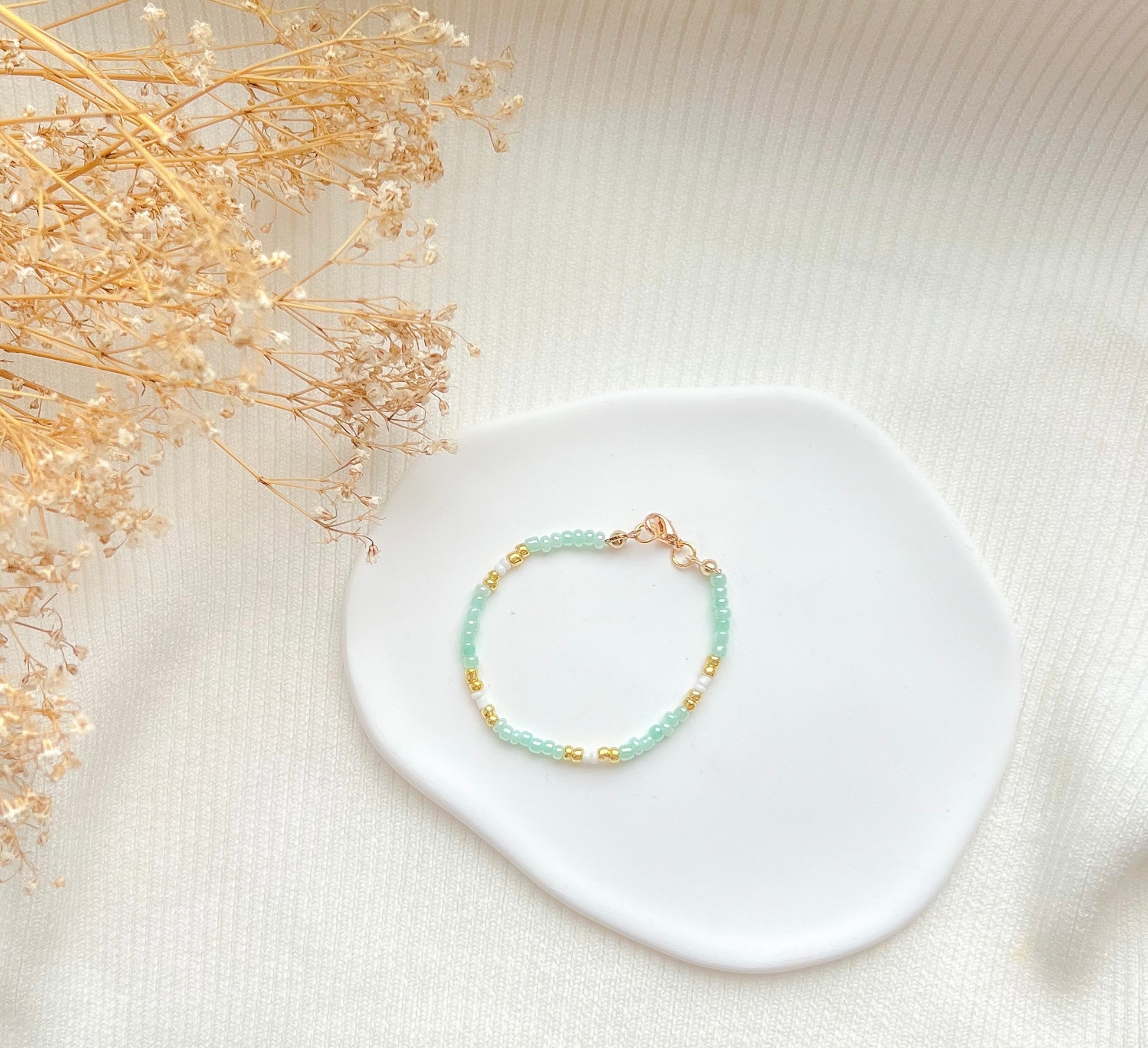 Et super smukt armbånd med de flotteste mint grønne perler.