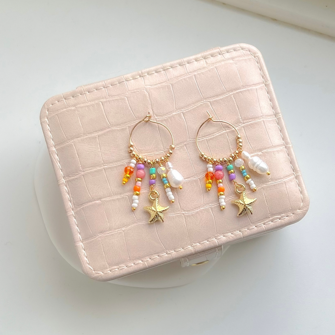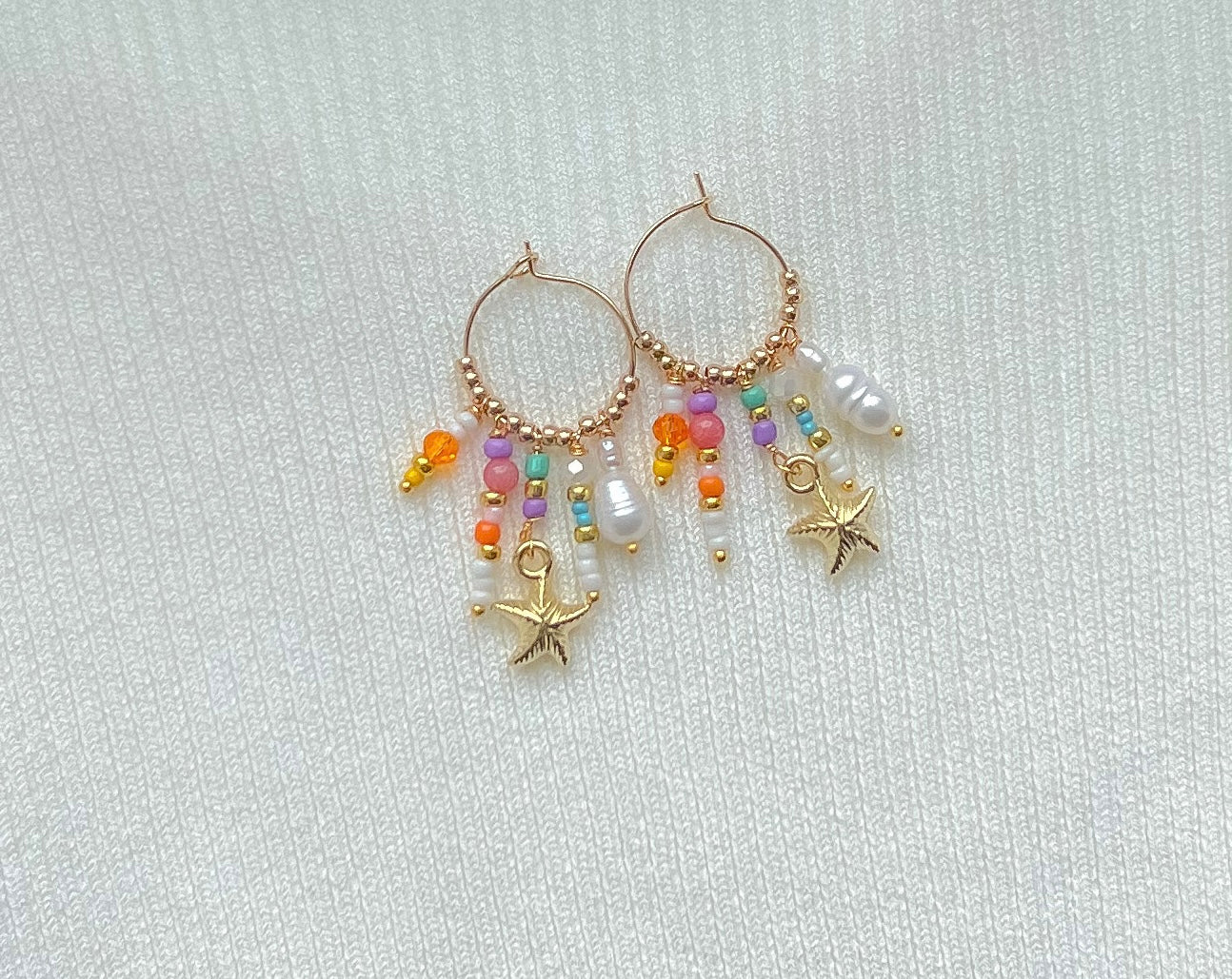 De smukkeste øreringe med en masse flotte farver, ferskvandsperler og et søstjerne vedhæng. De perfekte øreringe her til sommer!☀️.
