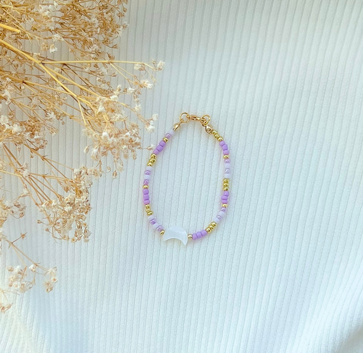 Det smukkeste armbånd med super flotte farver og et måne vedhæng.