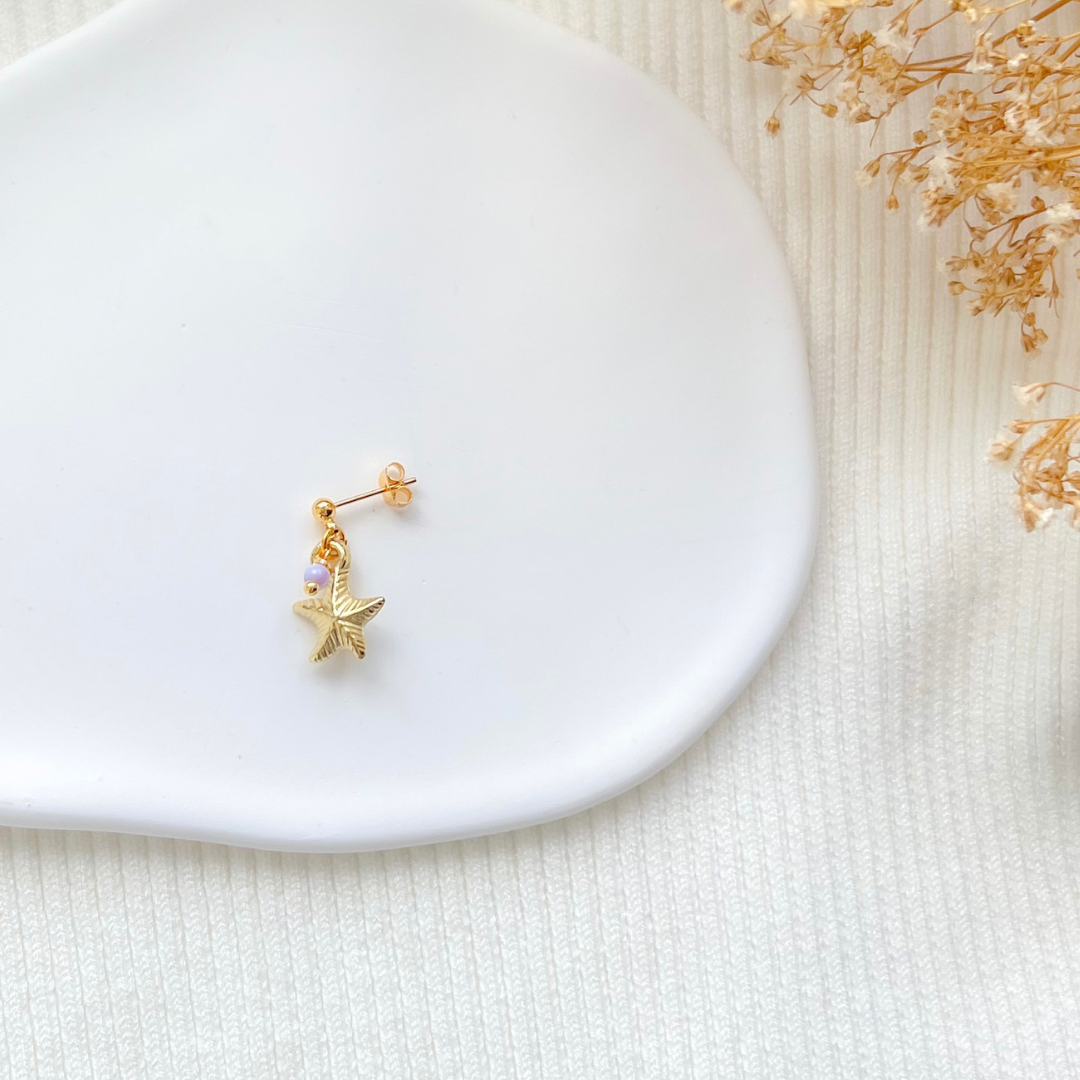 Den fineste ørering med et søstjerne vedhæng og en lille lilla perle. Denne ørering sælges enkeltvis, og dermed kan du mixe og matche som du selv ønsker.