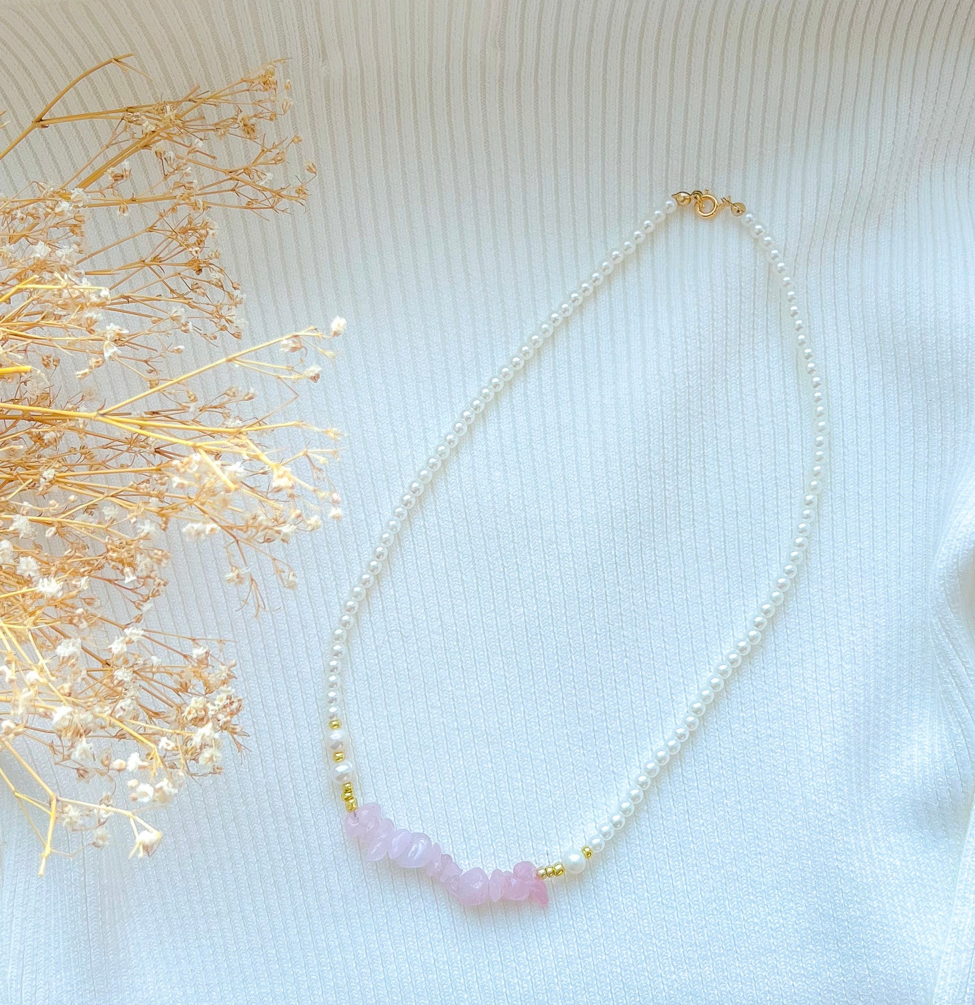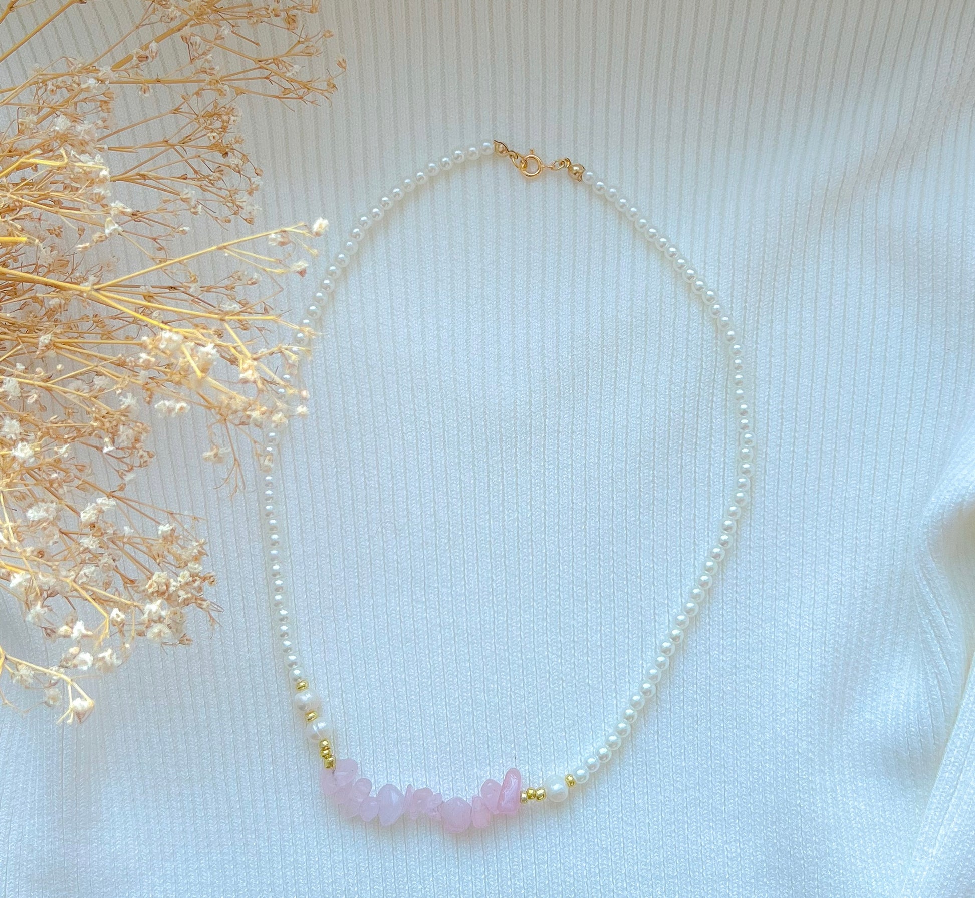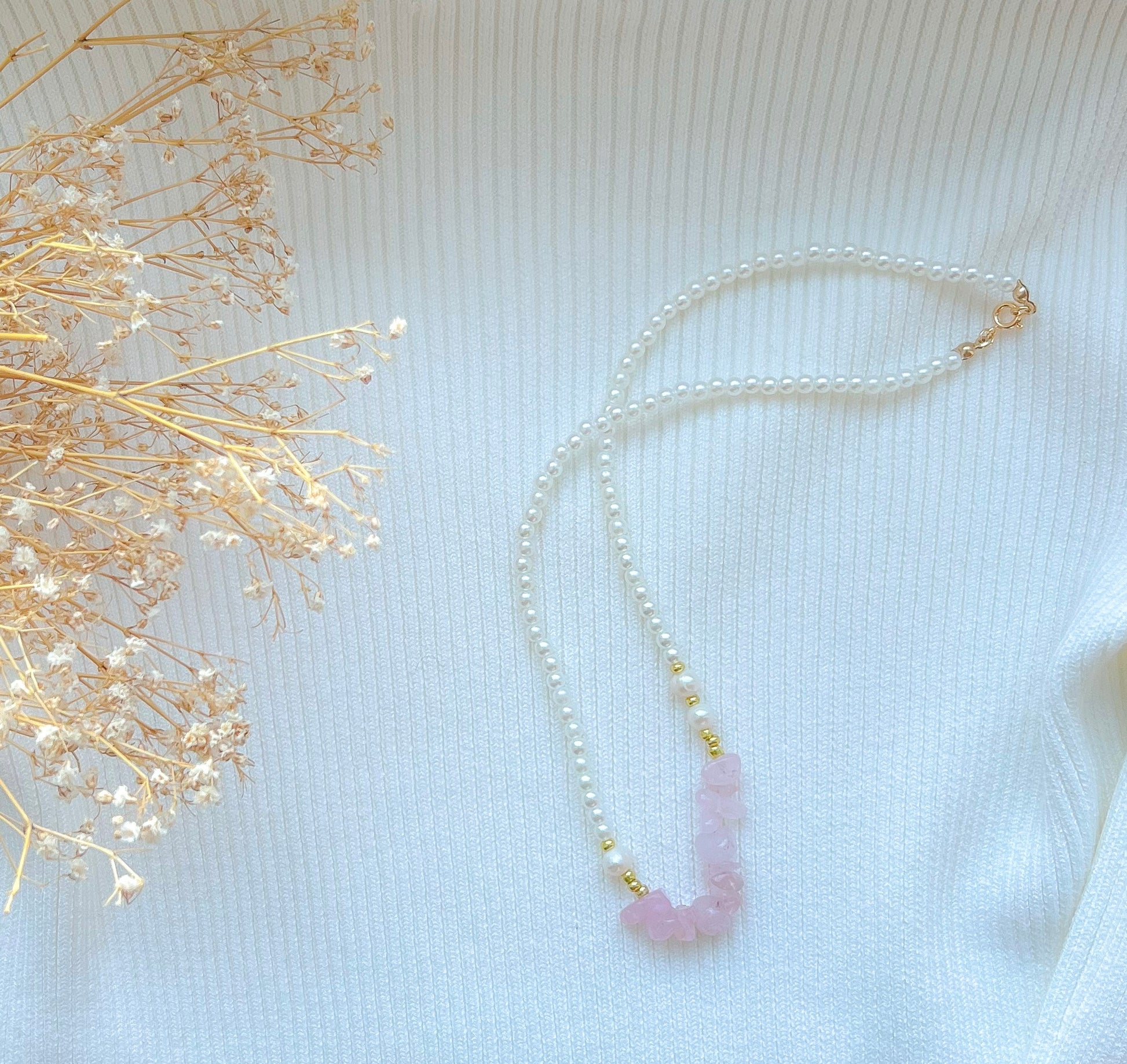 En super fin halskæde med de smukkeste perler som bl.a. Rose Quartz.