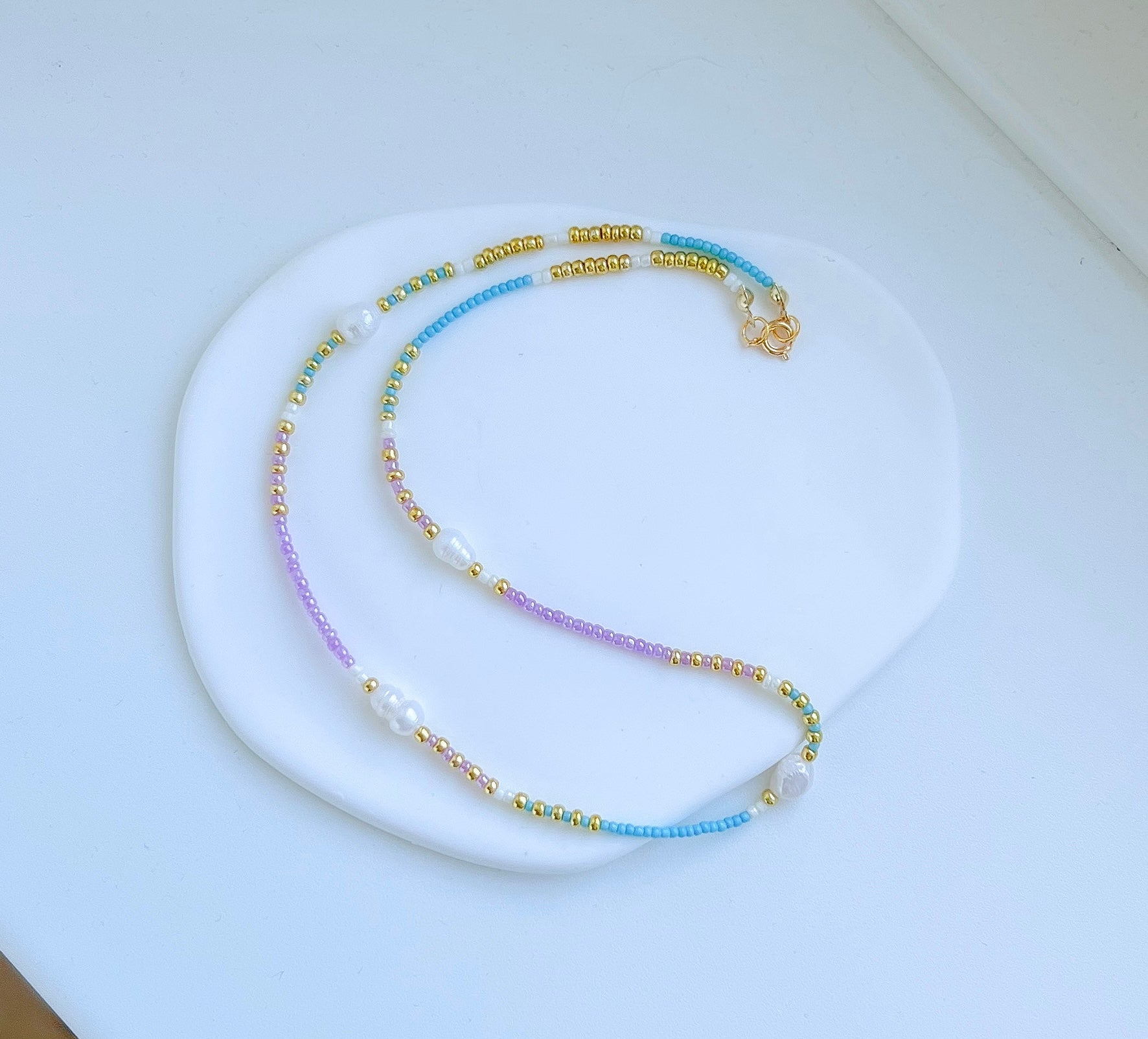 En super fin halskæde med super flotte farver og ferskvandsperler.