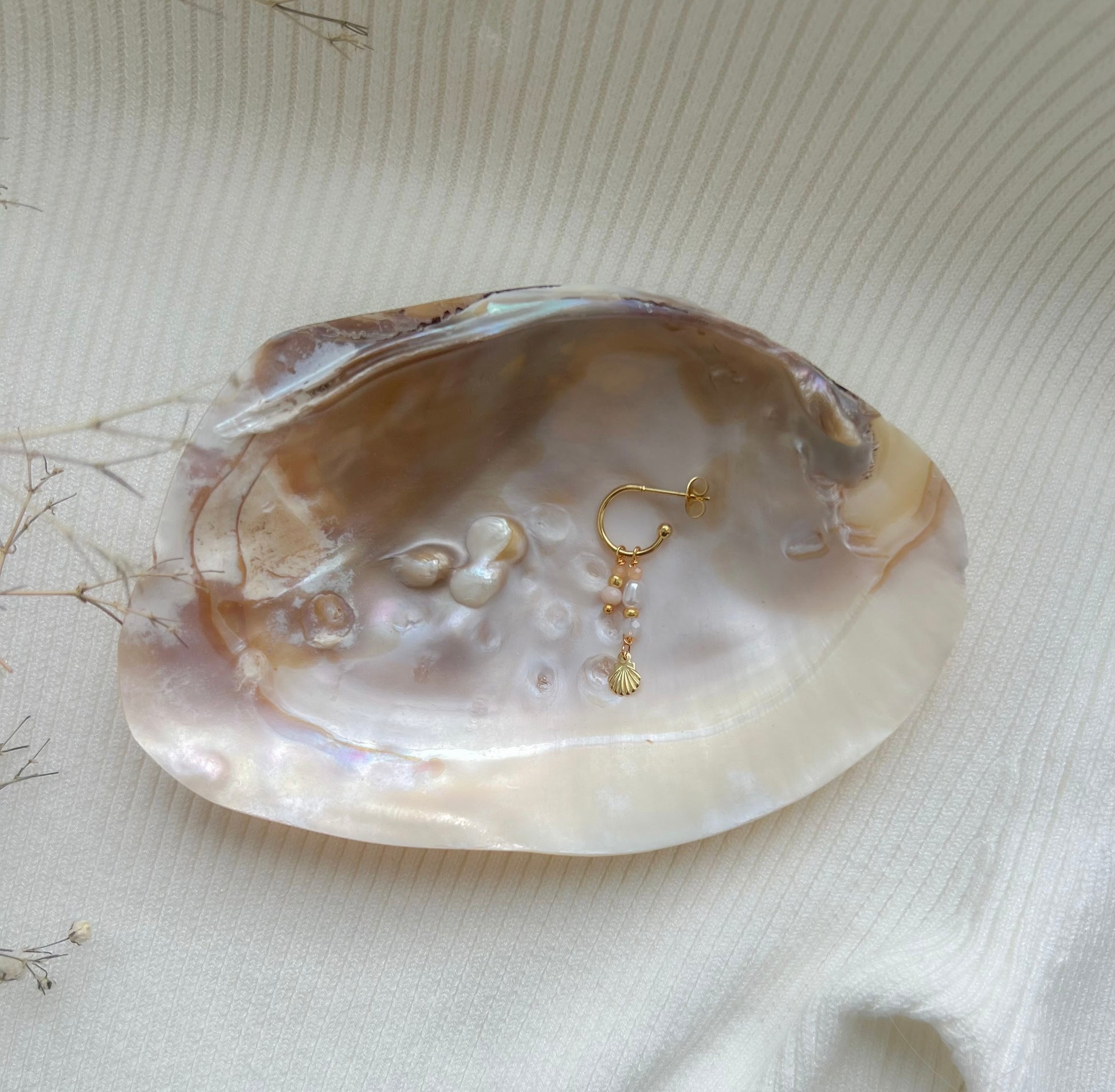 Denne fine nye Remi ørering er en super smuk ørering med de smukkeste perler og et muslinge vedhæng.